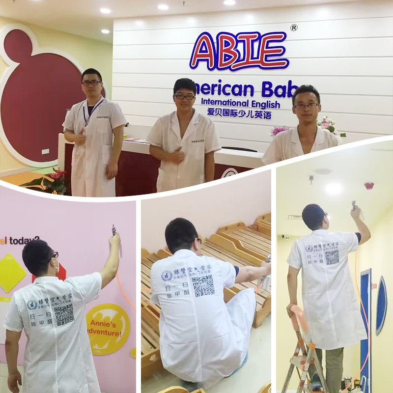 客戶需求:愛貝國際少兒英語是新裝修的,室內存在裝修異味,校方考慮到孩子們的健康問題,讓孩子們擁有一個良好的學習環境,特地邀請我們創綠家的工程師們去做空氣凈化治理服務。